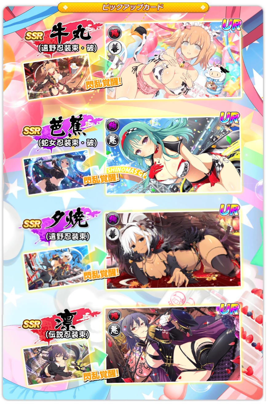 今期是兩姫 牛丸 傳說爆乳祭池 , 這期的兩姫的覺醒極限為LR級~ 在生命到達一定界限以下時, 可以使出非常強力的命驅秘傳忍法喔!