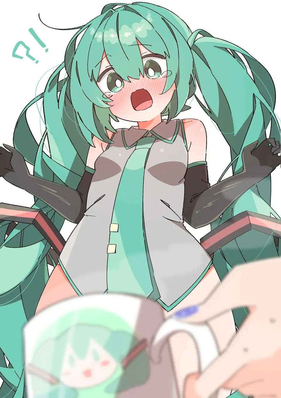 第一格为人物的面部特写,嘴巴被一只手轻轻捂住,旁边配有一个“!”的符号,整体神态呈现出意外、略带羞怯的感觉,动作上是单手掩口,姿态显得较为娇俏。