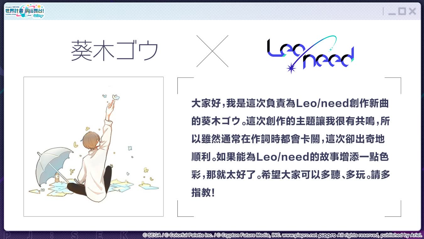 將會由 Leo/need 的成員們與初音未來、KAITO共同為大家帶來精彩演出✨