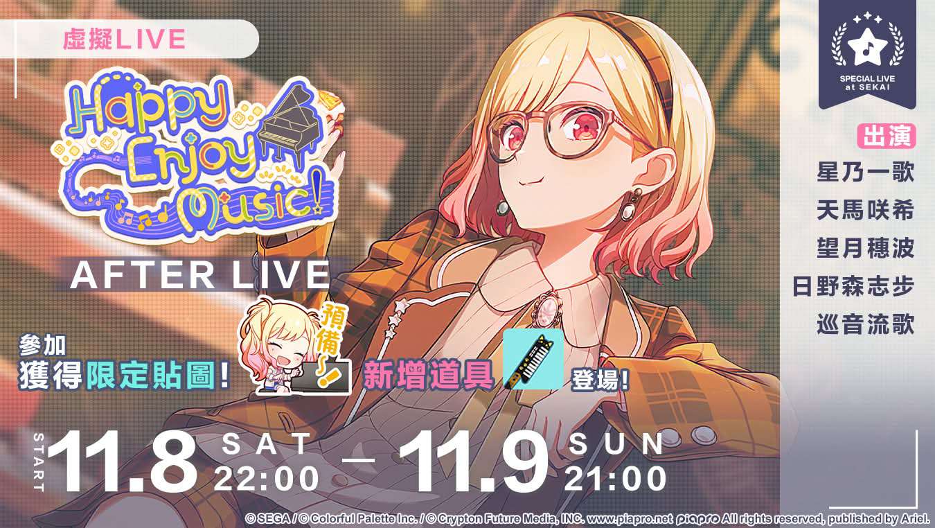 我們將於11/8(六)和11/9(日)舉辦 「Happy Enjoy Music! AFTER LIVE」