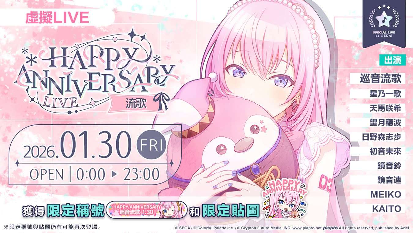我們將於1/30(五)舉辦「HAPPY ANNIVERSARY LIVE 流歌」。