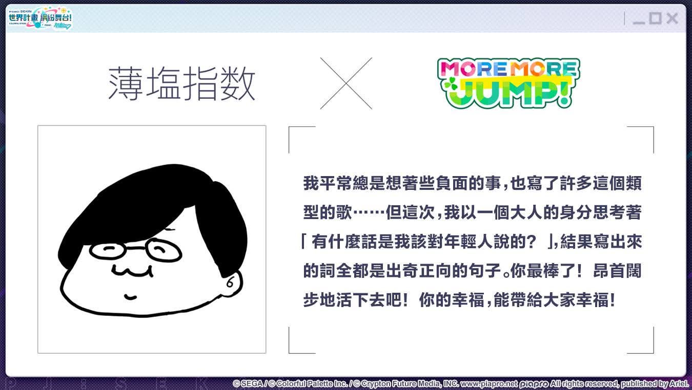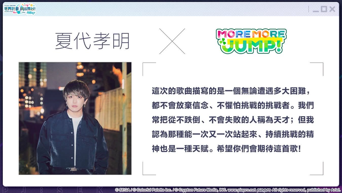 將會由MORE MORE JUMP!的成員與初音未來共同為大家帶來精彩演出