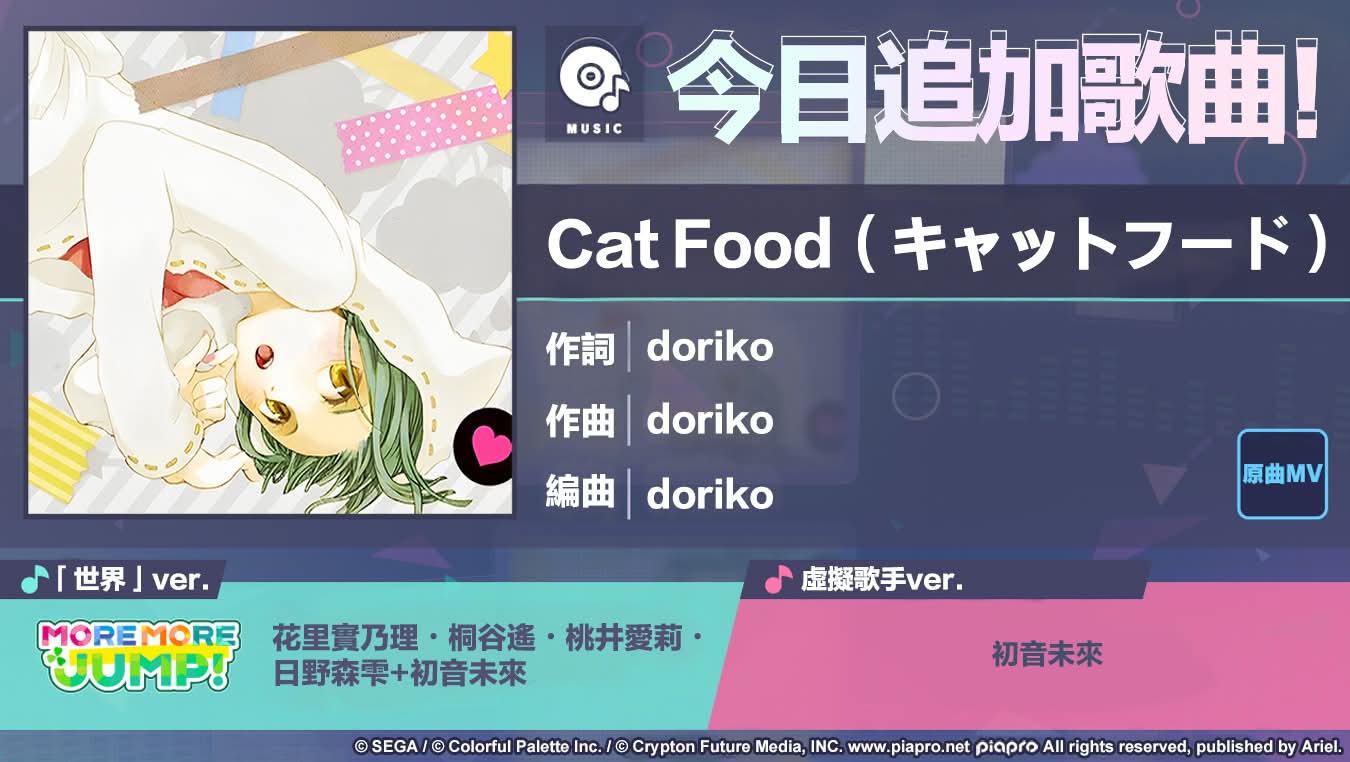 10/8 15:00起作為「4週年紀念歌曲追加活動」,追加歌曲《Cat Food (キャットフード)》!