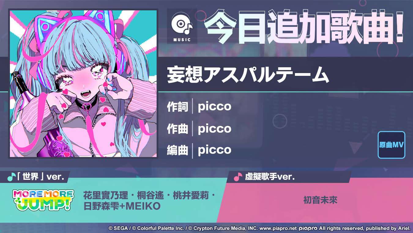 11/5 15:00起追加歌曲《妄想アスパルテーム》!