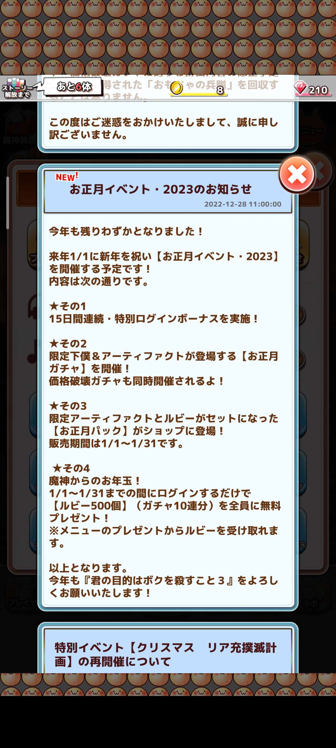 4:魔神给你的压岁钱,只要1月1号-1月30号登陆就会有500钻石!(分10批送,要登陆10天,每次50钻石)
