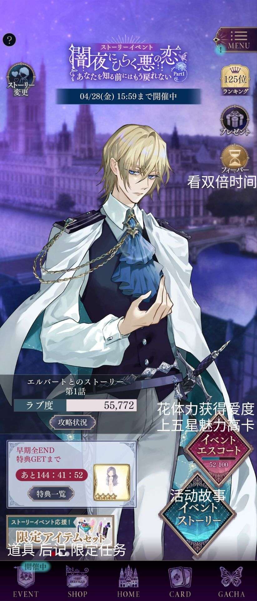 本期有五个人,全部结局看完所需【86190】爱度(送背景)(152小时内完成送装饰)。【300钻】一篇后记(每个有送对应不同装饰)(5个全买送换色背景)【四舍五入100体力≈1000爱度】