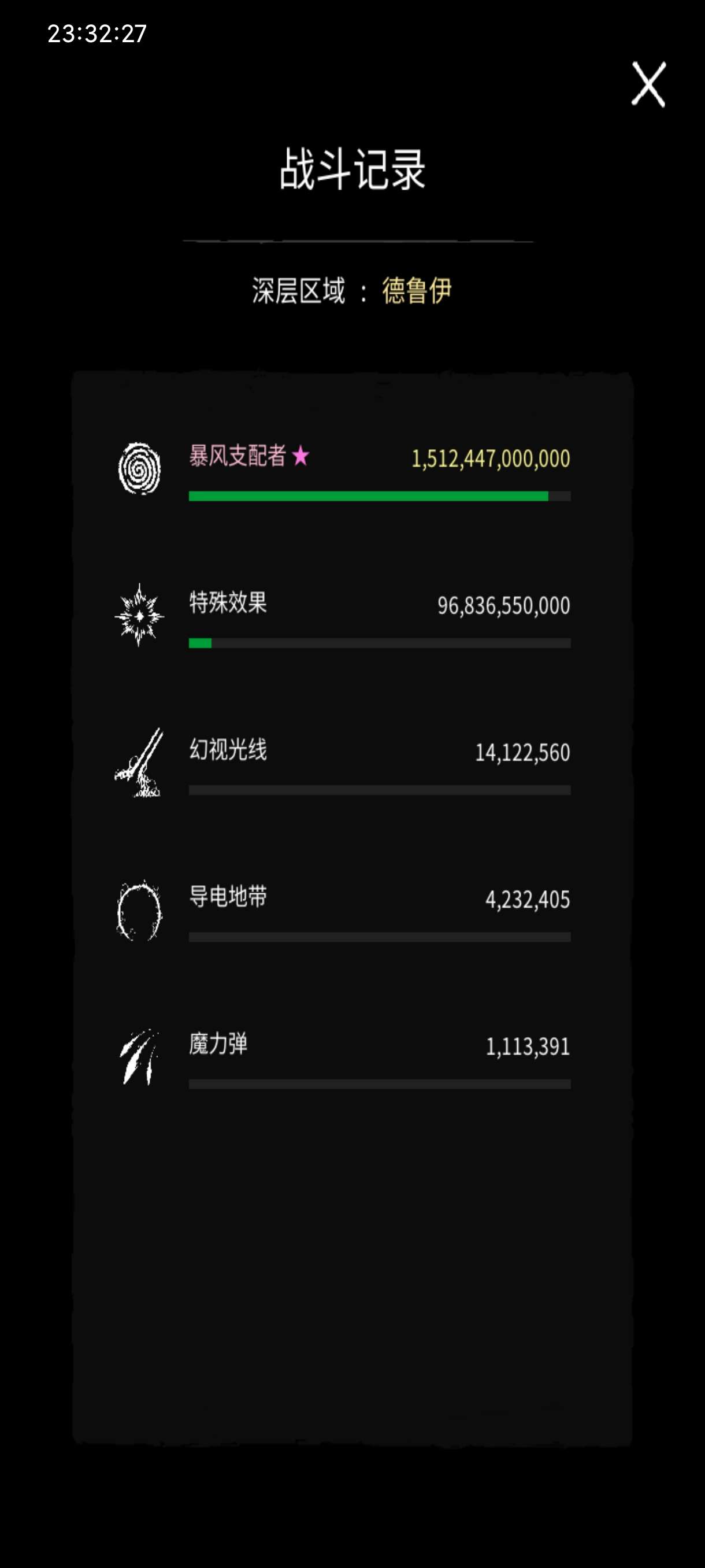 如图所示,等离子光线伤害跟体积和持续时间相关,伤害倍率跟数量相关,特殊强化跟幻视光线冷却有关,这个组合的输出前期(三十分钟)够用,但是后期完全不够,而且好像也不会叠加,而且这个玩意范围似乎跟视野有关,怪物掉落的经验球好像有上限,这就导致这玩意杀怪会减慢经验球获取速度,如果纯挂机的话,搭配幻视光线的强化神器,是能够很轻松拖到30分钟的,但是30分钟之后的输出开始乏力。在众多技能里面,属于为数不多的能够单刷的全图类组合,还是不错的。