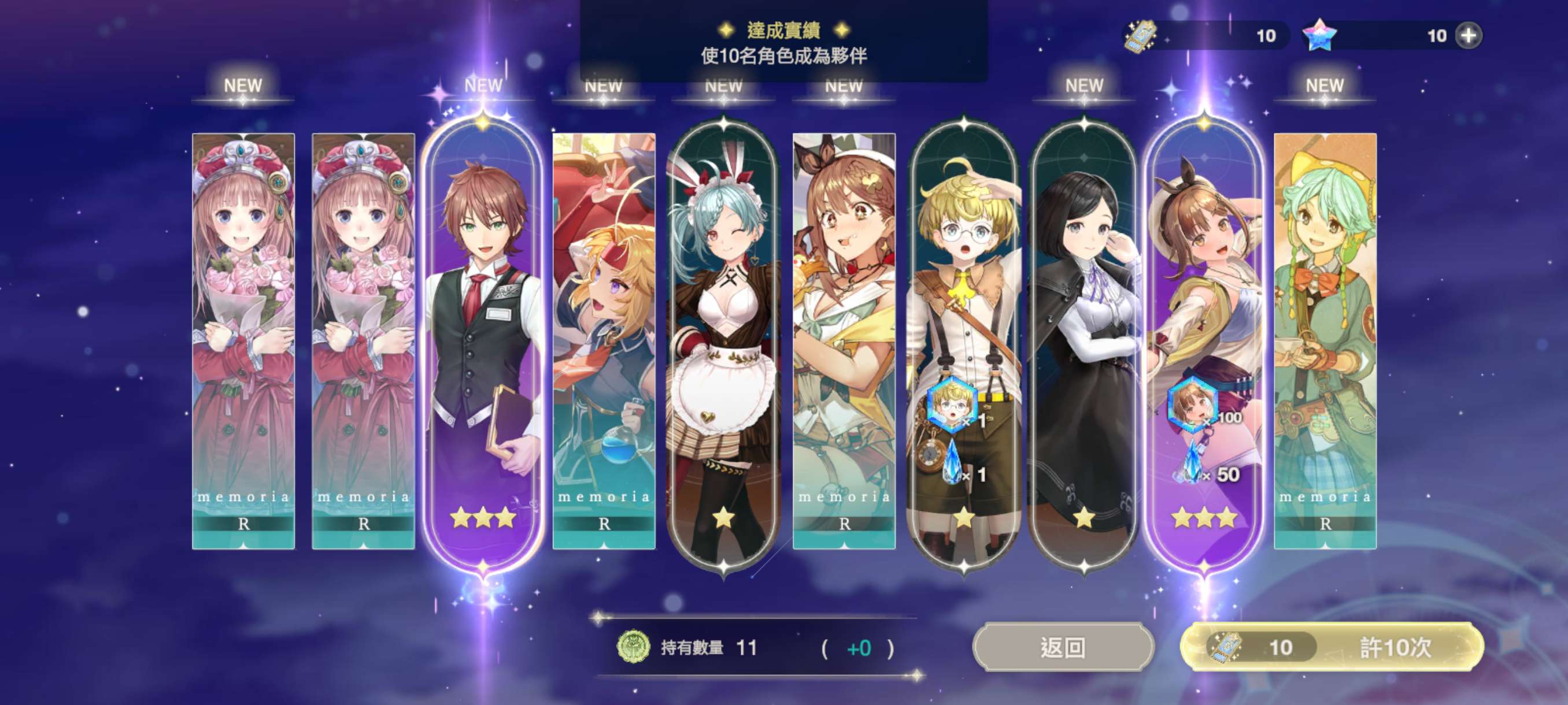 初始刷好了过来说一下,商店里3000钻可以买两发十连别忘了,绑定dc后又有一发十连,大家以抽出莱莎为开局出击吧!