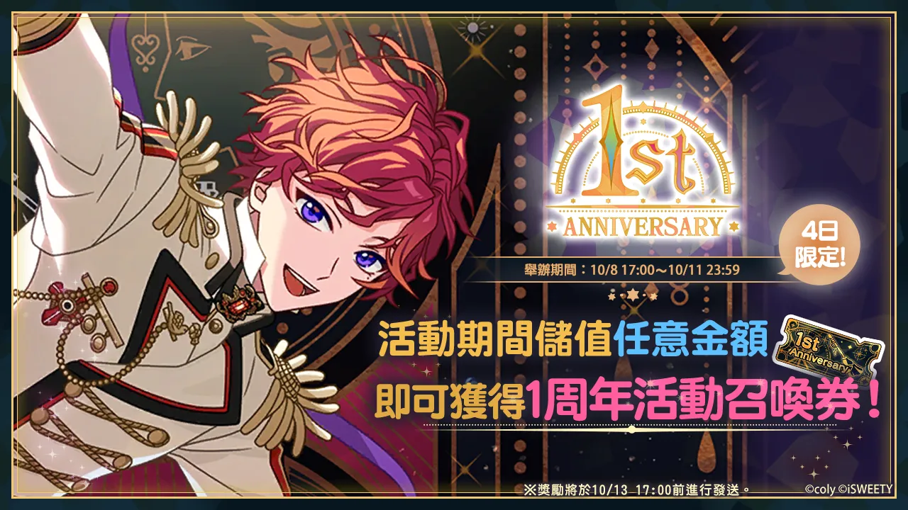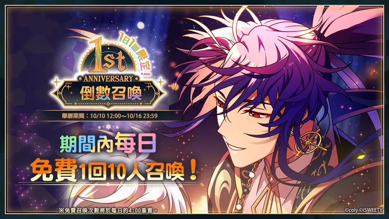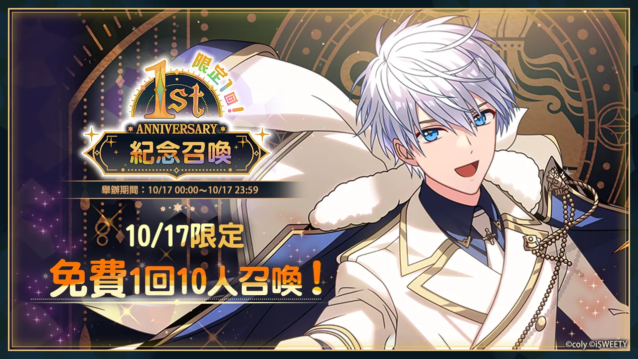 1st Anniversary倒數召喚登場10月10日12:00將開啟「1st Anniversary倒數召喚」,