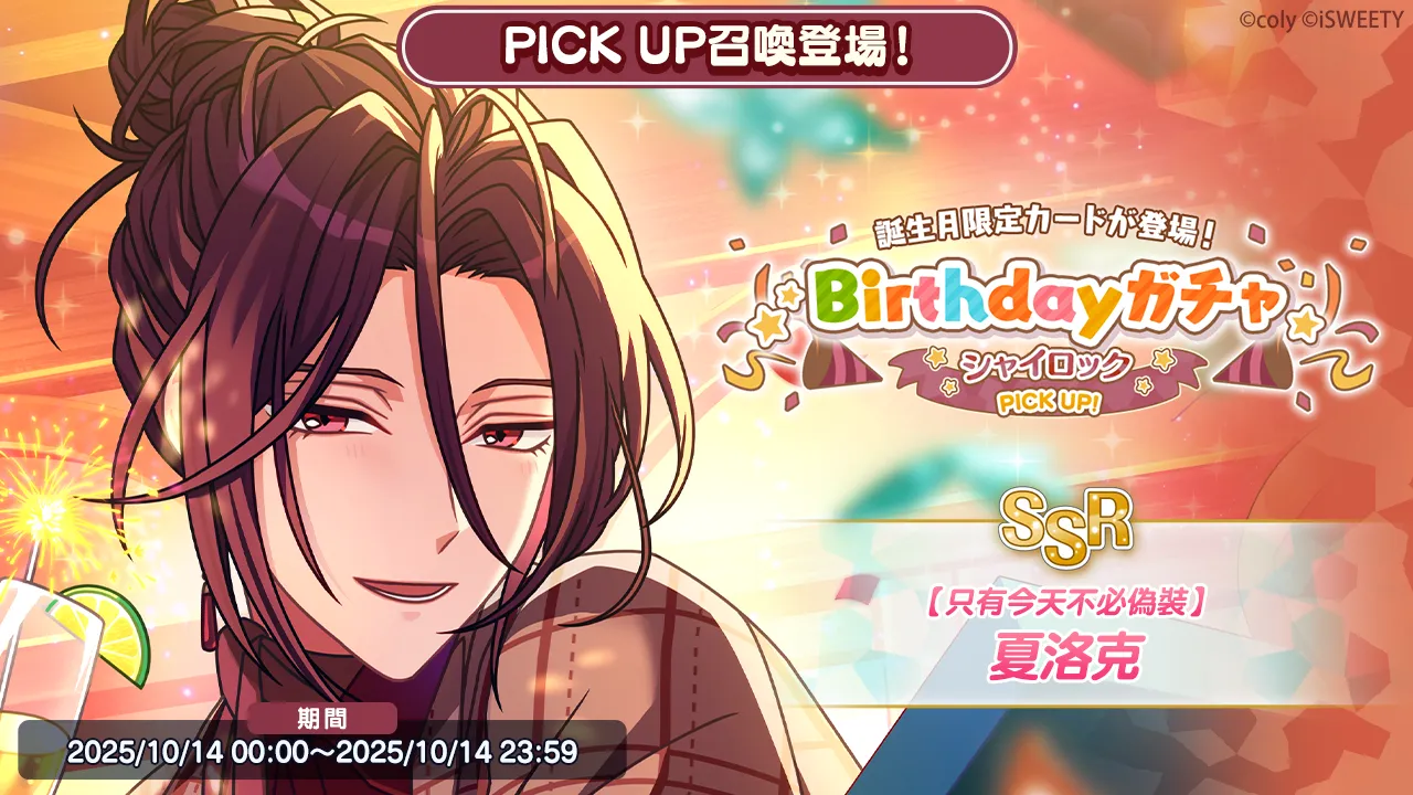 10/14 00:00 將會開啟Birthday召喚 夏洛克 PICK UP召喚✨