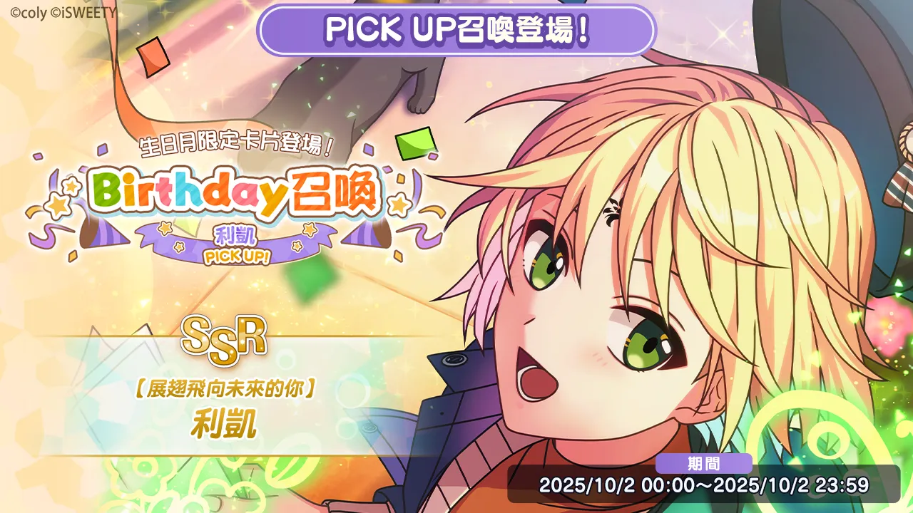 10/2 00:00 將會開啟Birthday召喚 利凱 PICK UP召喚✨